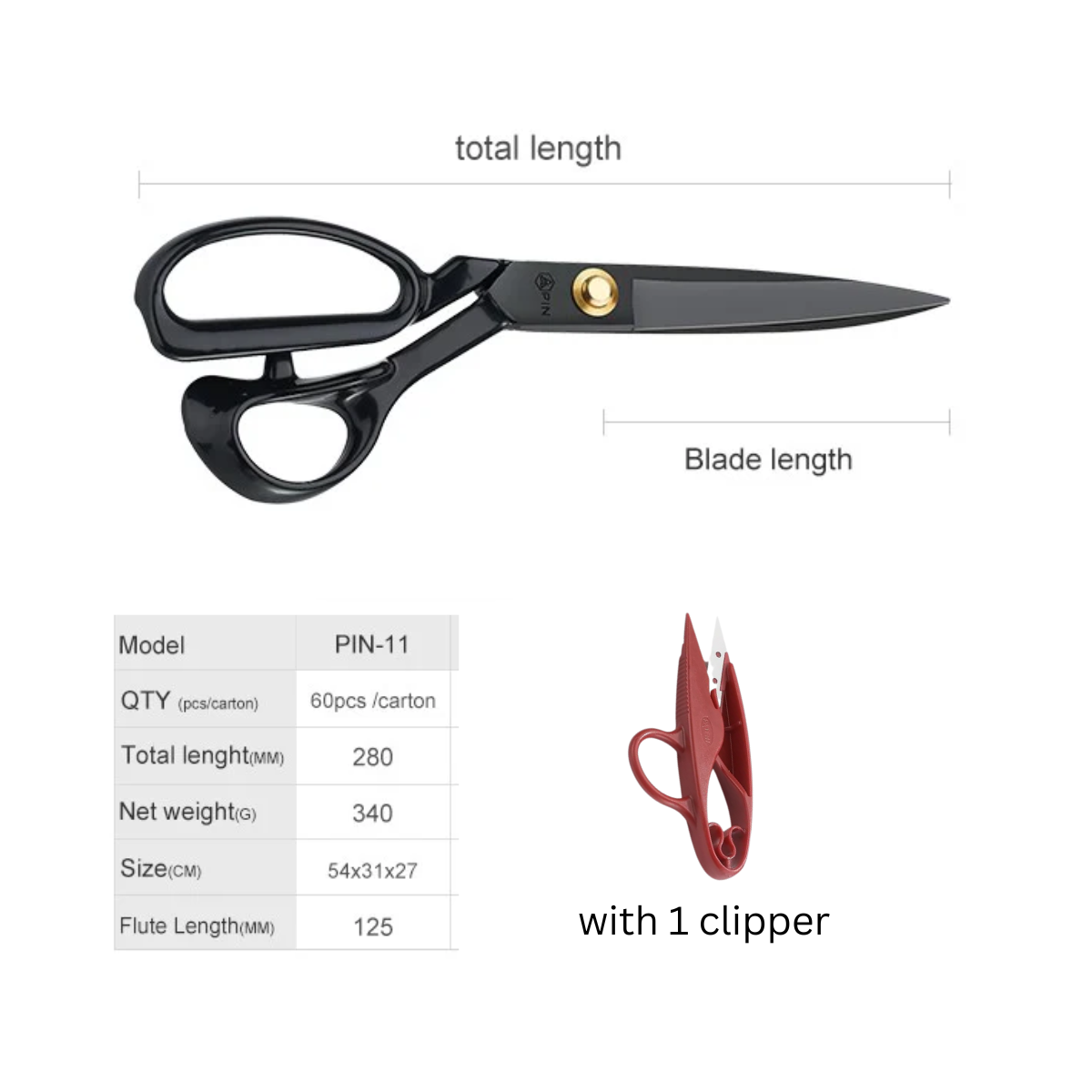 PIN 11-Inch Professional Tailor Shears & Free Clipper – The Ultimate Cutting Set