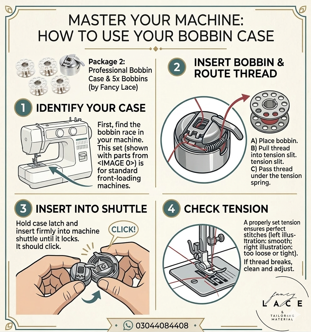 First, the bobbin case controls thread tension. Therefore, a damaged case can ruin your fabric. In addition, our case is made for domestic machines. Moreover, it fits brands like Singer, Brother, and Butterfly perfectly.